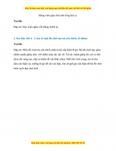 Đáp án: Món đồ chơi em yêu thích nhất là bộ xếp hình lê-gô. Bộ đồ chơi này gồm