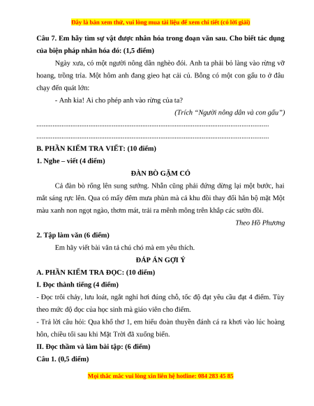 1. Nghe – viết (4 điểm) ĐÀN BÒ GẶM CỎ