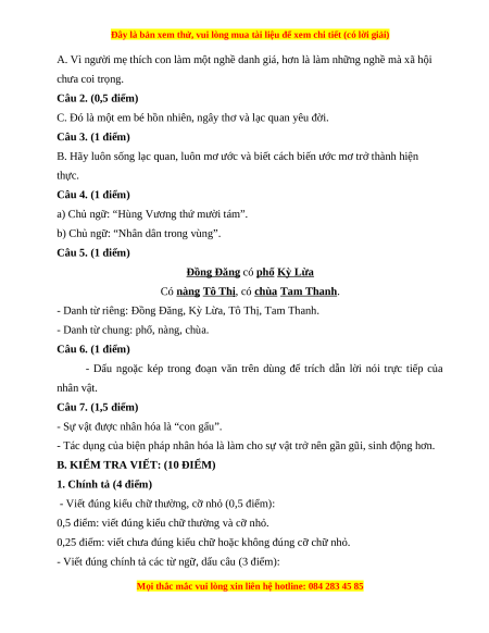 B. PHẦN KIỂM TRA VIẾT: (10 điểm)