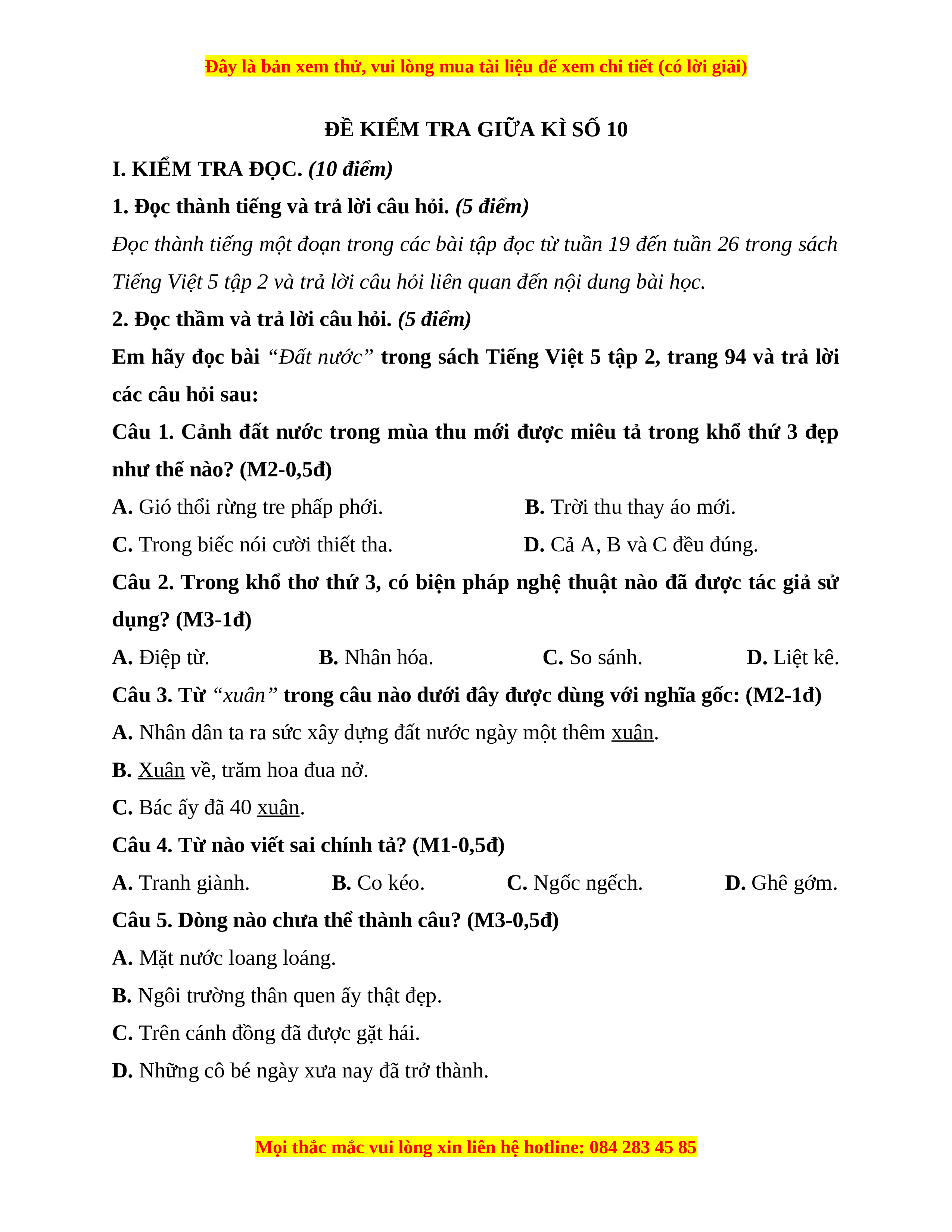 ĐỀ KIỂM TRA GIỮA KÌ SỐ 10