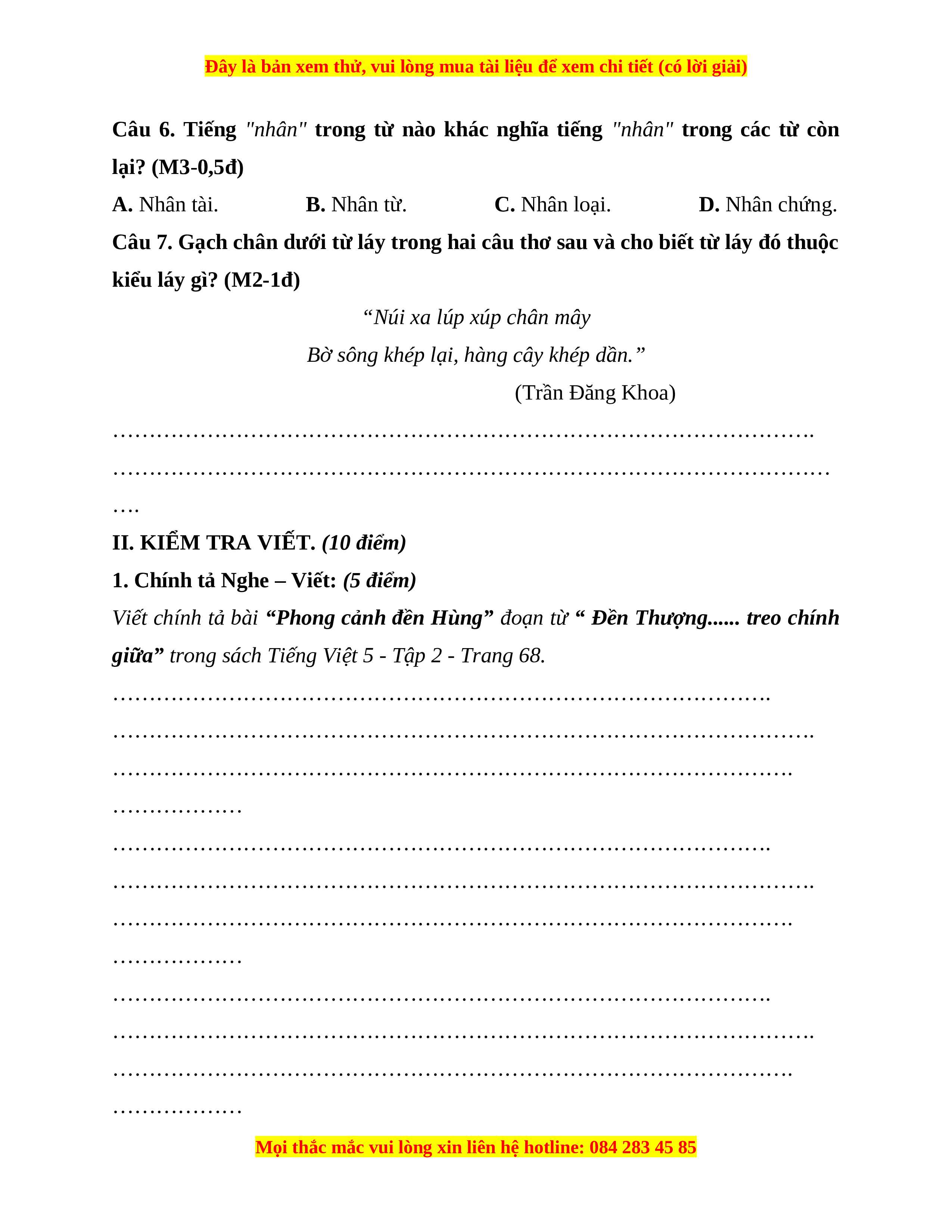 Đây là bản xem thử, vui lòng mua tài liệu để xem chi tiết (có lời giải)