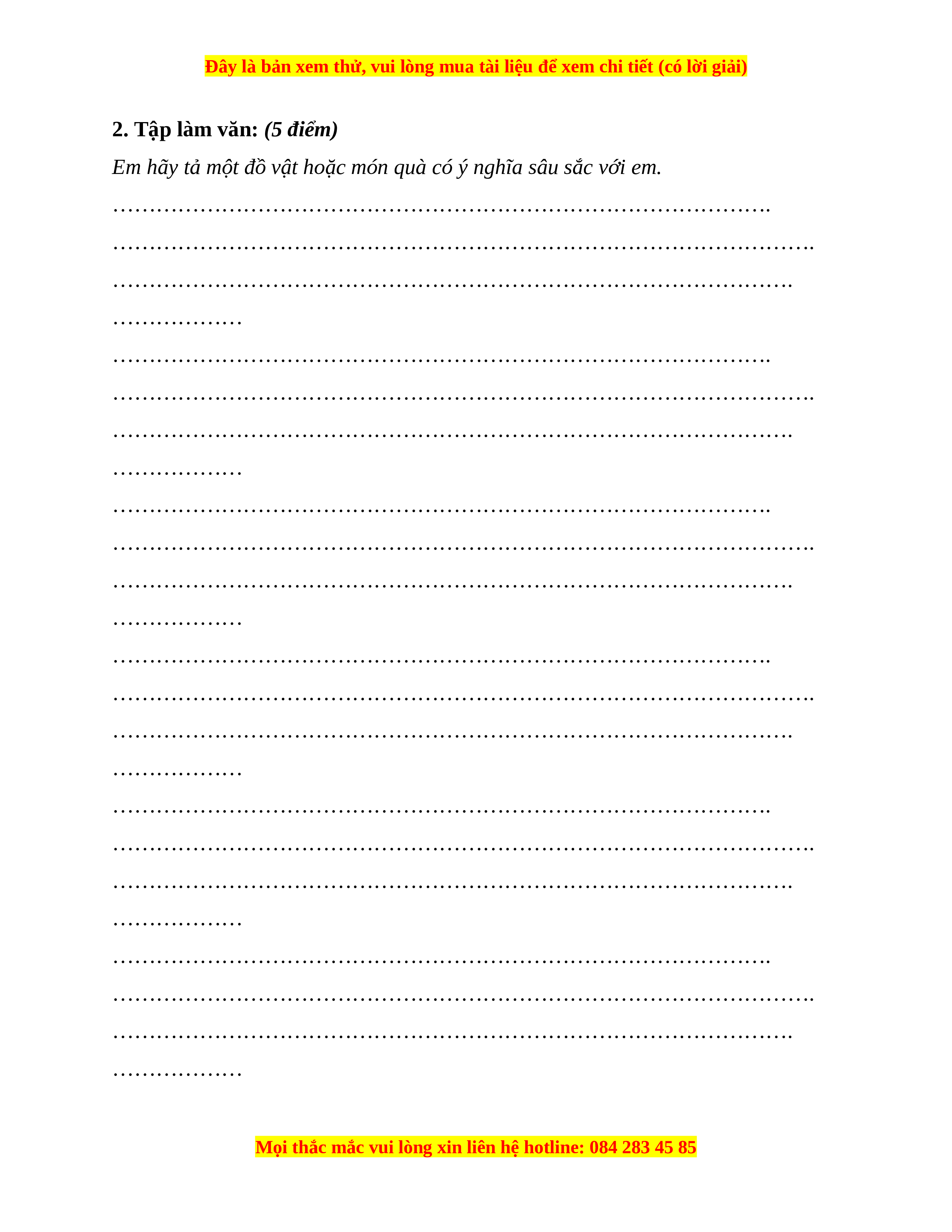 2. Tập làm văn: (5 điểm)