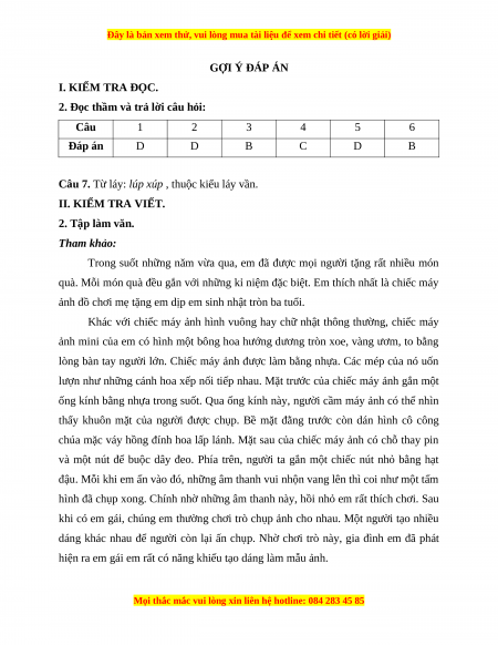 GỢI Ý ĐÁP ÁN I. KIỂM TRA ĐỌC.