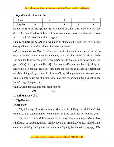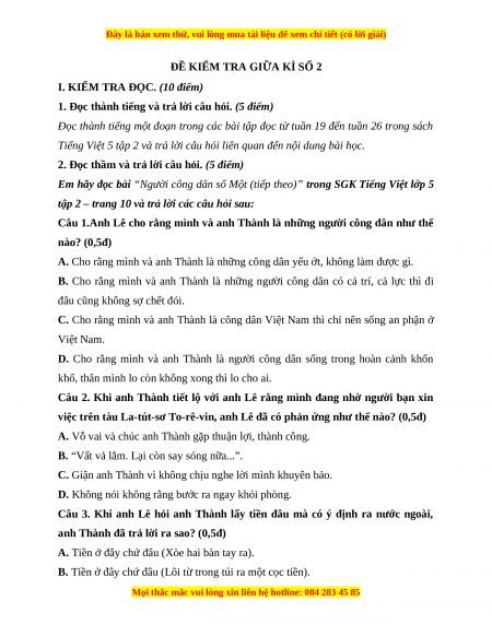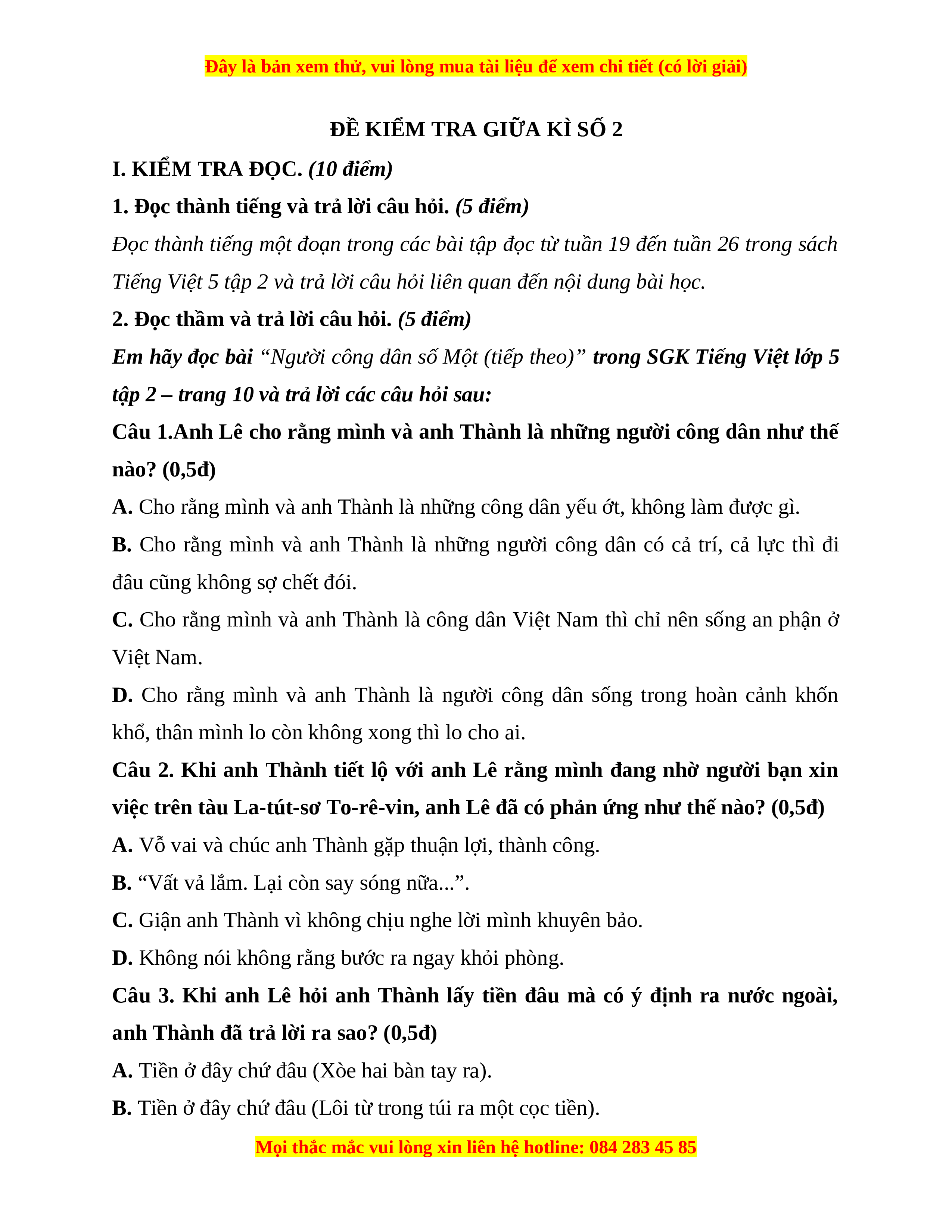 2. Đọc thầm và trả lời câu hỏi. (5 điểm)