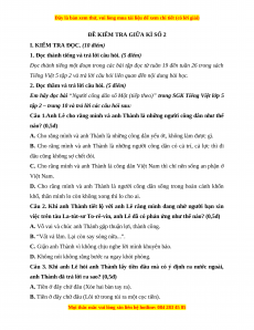 Đề thi giữa kì 2 Tiếng Việt lớp 5 năm 2023 (Đề 2)