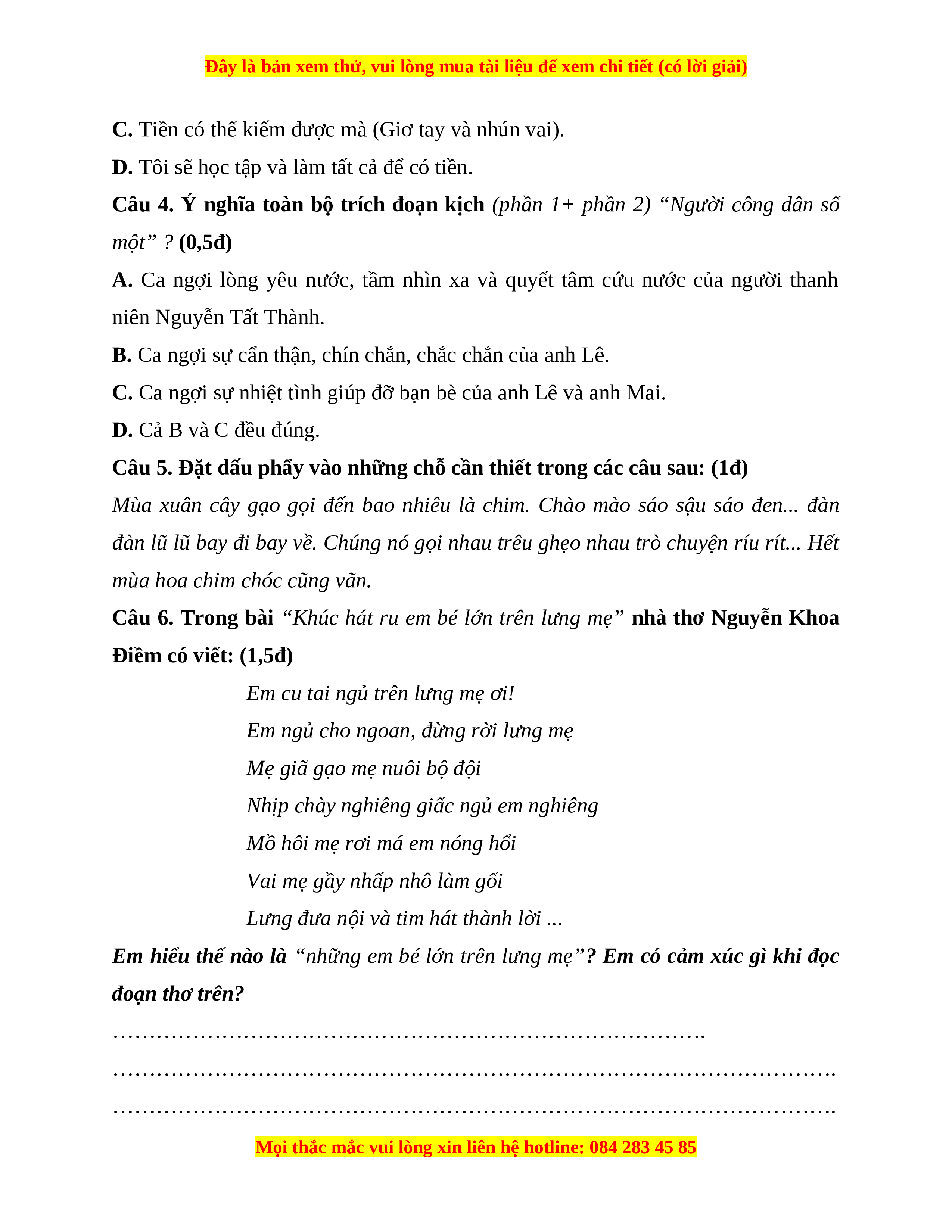 Câu 4. Ý nghĩa toàn bộ trích đoạn kịch (phần 1+ phần 2) “Người công dân số