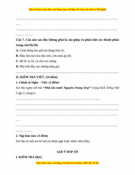 Câu 7. Câu nào sau đây không phải là câu ghép và phân biệt các thành phần trong câu?(0,5đ)