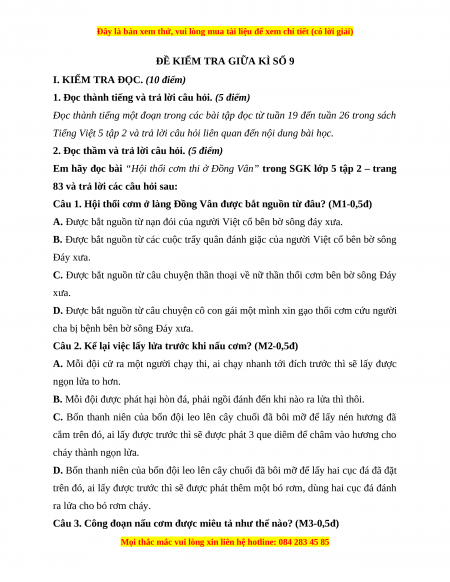 Đề thi giữa kì 2 Tiếng Việt lớp 5 năm 2023 (Đề 9)