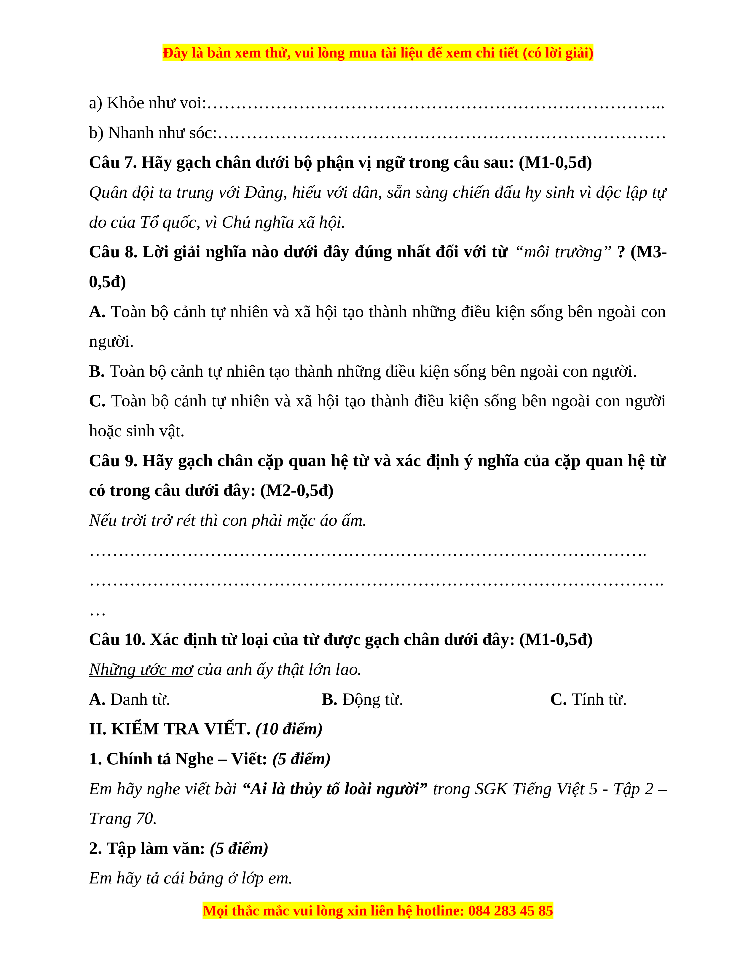 Đây là bản xem thử, vui lòng mua tài liệu để xem chi tiết (có lời giải)