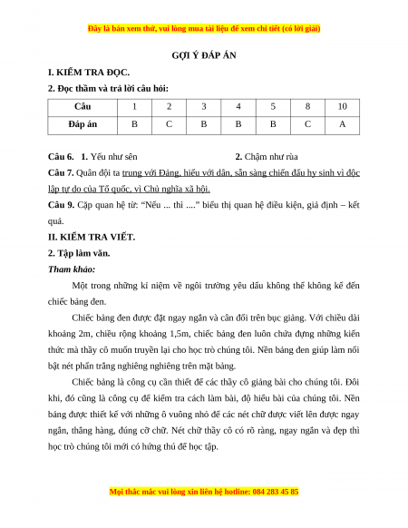 I. KIỂM TRA ĐỌC. (10 điểm)