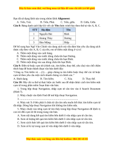 Câu 8: Bảng danh sách lớp 6A với cột Tên được trình bày theo thứ tự vần A, B, C. STT Họ đệm Tên 1 Nguyễn Hải Bình 2 Hoàng Thùy Dương 3 Đào Mộng Điệp