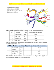 Câu 3 (1,0 đ): Bảng danh sách tổ 1 đăng kí học các môn tự chọn như sau: STT Họ đệm Tên