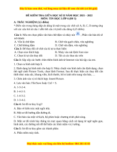 ĐỀ KIỂM TRA GIỮA HỌC KÌ II NĂM HỌC 2021 - 2022