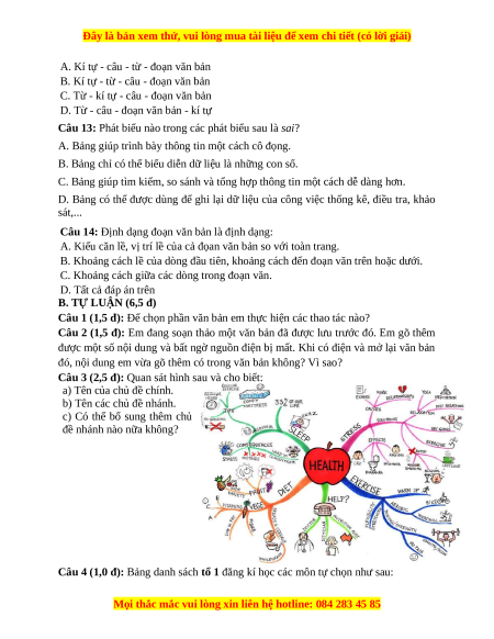 Câu 5: Sơ đồ tư duy gồm các thành phần: A. Phần mềm máy tính.