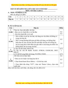 ĐÁP ÁN ĐỀ KIỂM TRA GIỮA HỌC KÌ II NĂM HỌC ........................