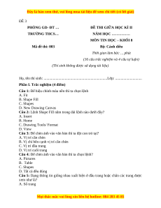 Câu 1: Để hiệu chỉnh màu nền thì ta chọn lệnh A. Fit B. Shape Fill C. Shapes D. New Drawing Canvas