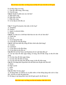 Câu 5: Dạng thông tin giống nhau xuất hiện ở đầu trang hoặc chân các trang được xem như là? A. Số trang