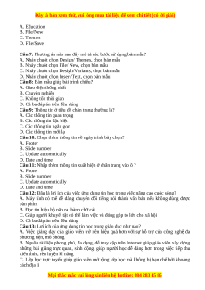 Câu 10: Chọn thêm thông tin về ngày trình bày chọn? A. Footer B. Slide number C. Update automatically D. Date and time