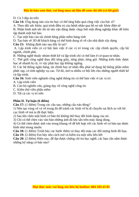 Câu 20: (2 điểm) Hiện nay, để đạt được chứng chỉ tin học nghề, các bạn cần nắm được
