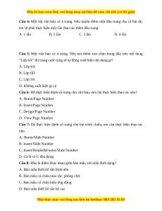 Câu 5: Một văn bản có 4 trang. Nếu em thêm vào chân trang đầu tiên nội dung