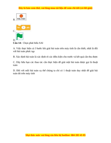 D. Đối với mỗi bài toán cụ thể chúng ta chỉ có 1 thuật toán duy nhất để giải bài toán đó trên máy tính