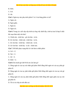 Câu 1. Các thành phần của văn bản gồm: A. Kí tự. B. Đoạn. C. Trang. D. Tất cả đáp án trên.