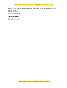 Bước 6: Chọn lệnh Save trên bảng chọn File để lưu và đặt tên tệp theo yêu cầu. Câu 2: (2 điểm) Học sinh thực hành. Câu 3: (1,5 điểm) Học sinh thực hành.