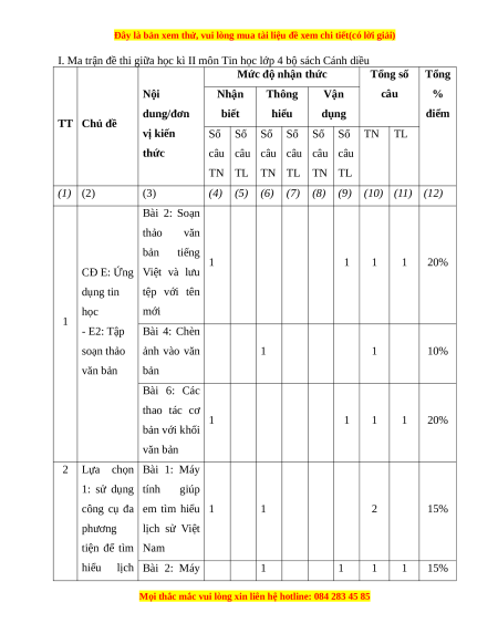 - Tailieugiaovien.com.vn giới thiệu 4 đề giữa kì 2 gồm đầy đủ ma trận và lời giải chi tiết môn Tin học lớp 4 Cánh diều mới nhất năm 2024 nhằm giúp Giáo viên có thêm tài liệu tham khảo ra đề thi Tin học lớp 4.