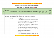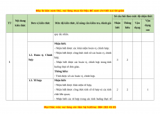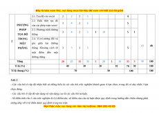 Đơn vị kiến thức tổng kiến thức Thời Thời Thời Thời gian Số Số Số Số điểm gian gian gian gian TN TL (phút) CH CH CH CH (phút) (phút) (phút) (phút) 1.1. Quy tắc cộng. Quy tắc nhân. Sơ đồ hình 2 3 2 4 1 10 4 1 ĐẠI SỐ cây 1 47 52 TỔ HỢP 1.2. Hoán vị. Chỉnh hợp 3 3 2 4 5 1.3. Tổ hợp 2 3 2 5 1 10 4 1 1.4. Nhị thức Newton 2 3 1 2 3