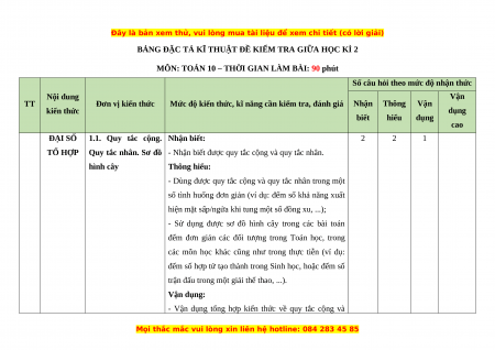 - Các câu hỏi ở cấp độ vận dụng và vận dụng cao là các câu hỏi tự luận.