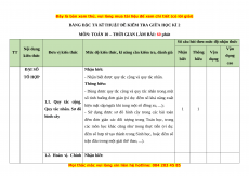 Đơn vị kiến thức tổng kiến thức Thời Thời Thời Thời gian Số Số Số Số điểm gian gian gian gian TN TL (phút) CH CH CH CH (phút) (phút) (phút) (phút) 1.1. Quy tắc cộng. Quy tắc nhân. Sơ đồ hình 1 1 1 2 2 ĐẠI SỐ cây 1 34 53,33 TỔ HỢP 1.2. Hoán vị. Chỉnh hợp 2 2 1 2 3 1.3. Tổ hợp 2 2 1 2 1 10 3 1 1.4. Nhị thức Newton 1 1 1 2 1 10 2 1