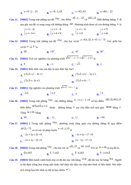 Câu 17. [MĐ1] ] Trong mặt phẳng
