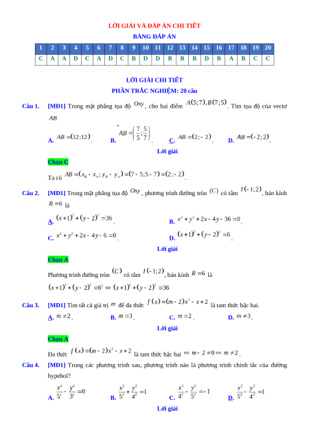 LỜI GIẢI VÀ ĐÁP ÁN CHI TIẾT BẢNG ĐÁP ÁN 1 2 3 4 5 6 7 8 9