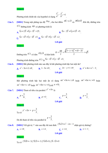 có phương trình là A. . B. . C. . D. . Câu 6.