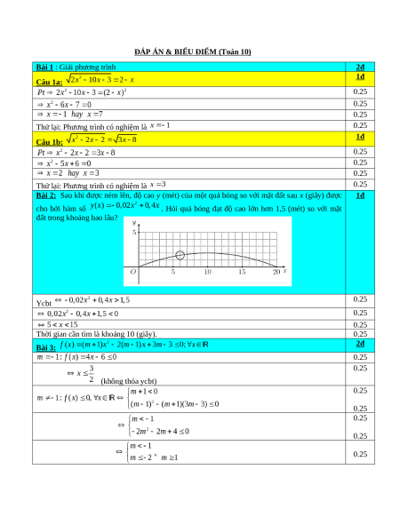 ĐÁP ÁN & BIỂU ĐIỂM (Toán 10)