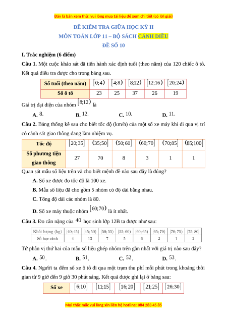 MÔN TOÁN LỚP 11 – BỘ SÁCH CÁNH DIỀU ĐỀ SỐ 10