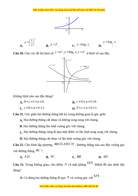 Câu 18. Trong các hàm số sau, hàm số nào không phải là hàm số mũ? A. . B. . C. . D. .