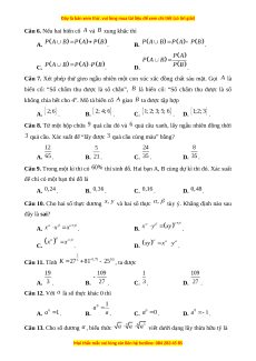 A. . B. . C. . D. . Câu 14. Rút gọn ta được A. . B. . C. . D. . Câu 15. Cho và