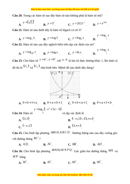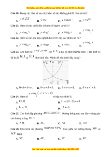 như hình bên. Mệnh đề nào dưới đây đúng? A. . B. . C. . D. . Câu 24. Hàm số có tập xác định là A. . B. . C. . D. .