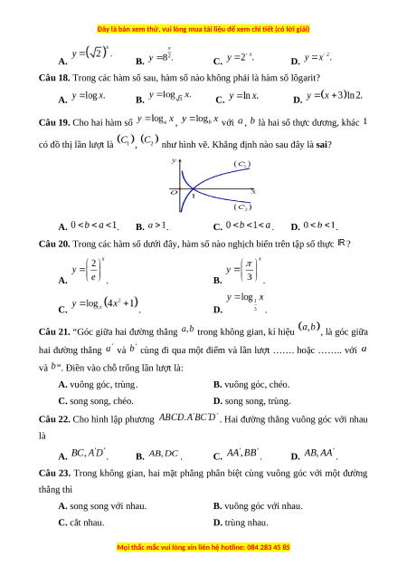 Câu 18. Trong các hàm số sau, hàm số nào không phải là hàm số lôgarit? A. B. C. D.