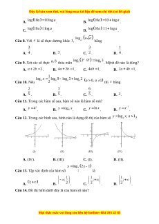 . Mệnh đề nào là đúng? A. . B. . C. . D. . Câu 10. Nếu thì bằng A. . B. . C. . D. .