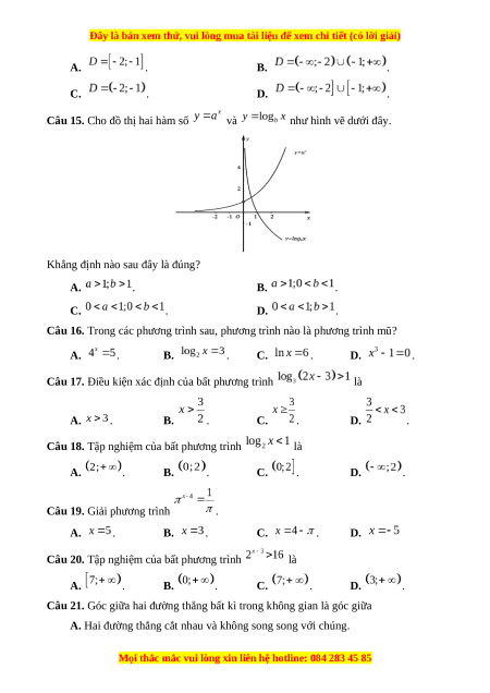 Câu 15. Cho đồ thị hai hàm số và