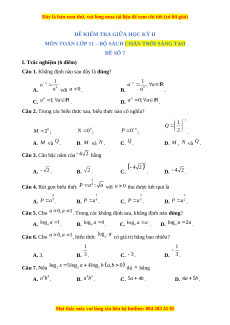 MÔN TOÁN LỚP 11 – BỘ SÁCH CHÂN TRỜI SÁNG TẠO ĐỀ SỐ 7