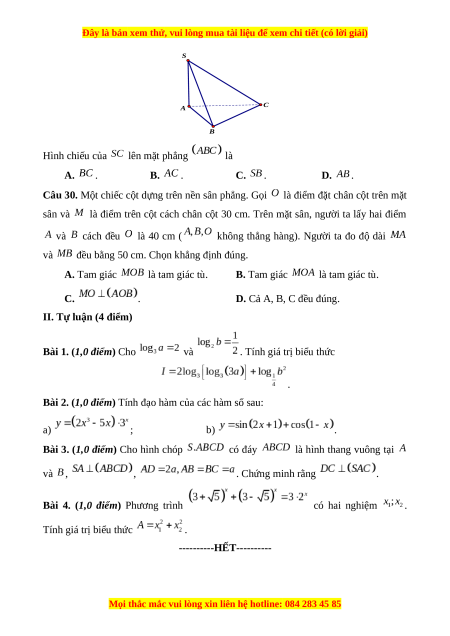 Câu 29. Cho hình chóp có (như hình vẽ dưới).
