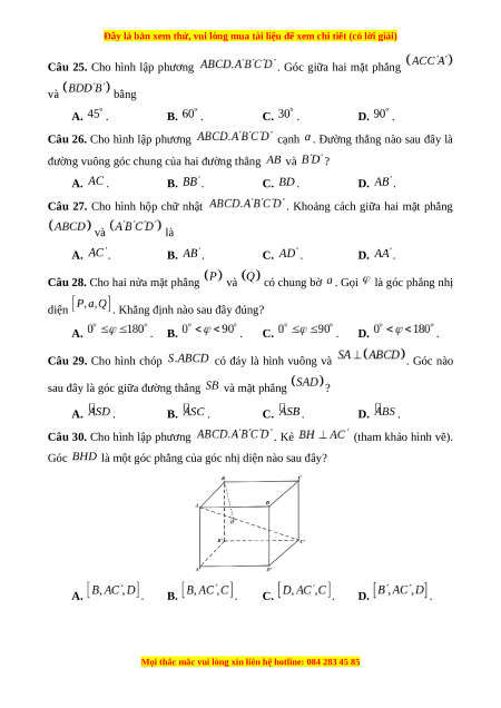 Câu 16. Cho hình lập phương