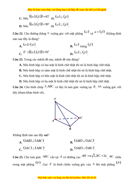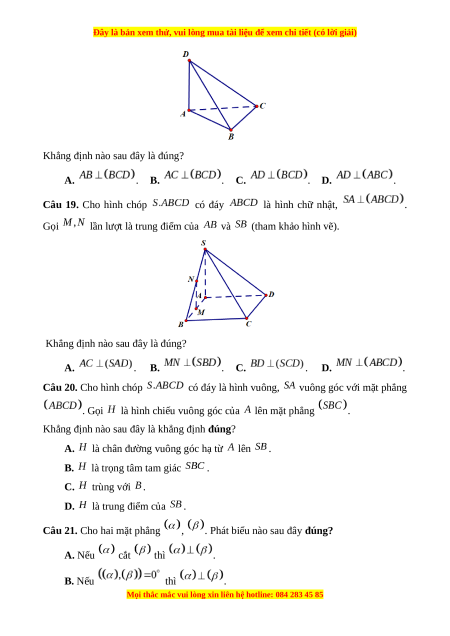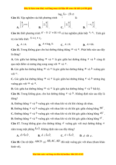 Câu 17. Trong không gian cho đường thẳng vuông góc với mọi đường thẳng nằm trong mặt phẳng