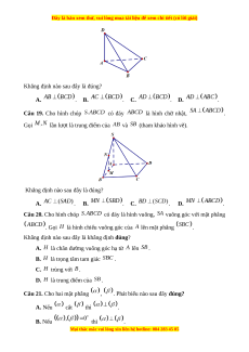 Câu 20. Cho hình chóp có đáy là hình vuông,
