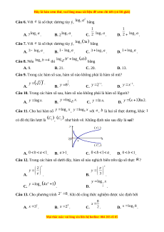 Câu 10. Trong các hàm số sau, hàm số nào không phải là hàm số lôgarit? A. B. C. D.