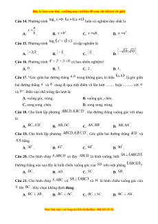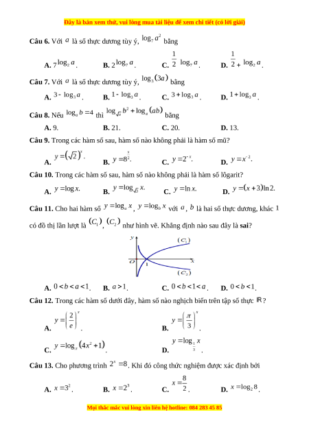 Câu 7. Với là số thực dương tùy ý, bằng A. . B. . C. . D. . Câu 8. Nếu thì bằng A. 9. B. 21. C. 20. D. 13.