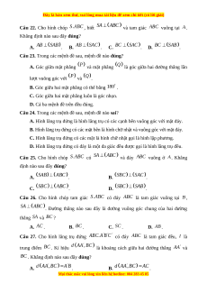 Câu 25. Cho hình chóp có và đáy vuông ở . Khẳng